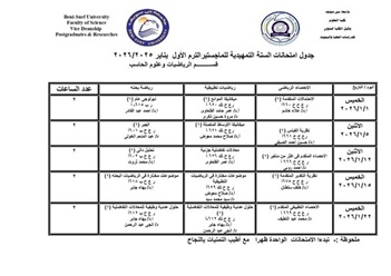 جدول امتحانات الفصل الدراسي الاول للعام الجامعي 2026/2025