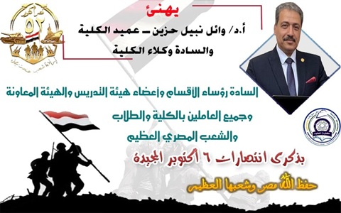 تهنئة عميد الكلية بذكري انتصارات اكتوبر المجيدة